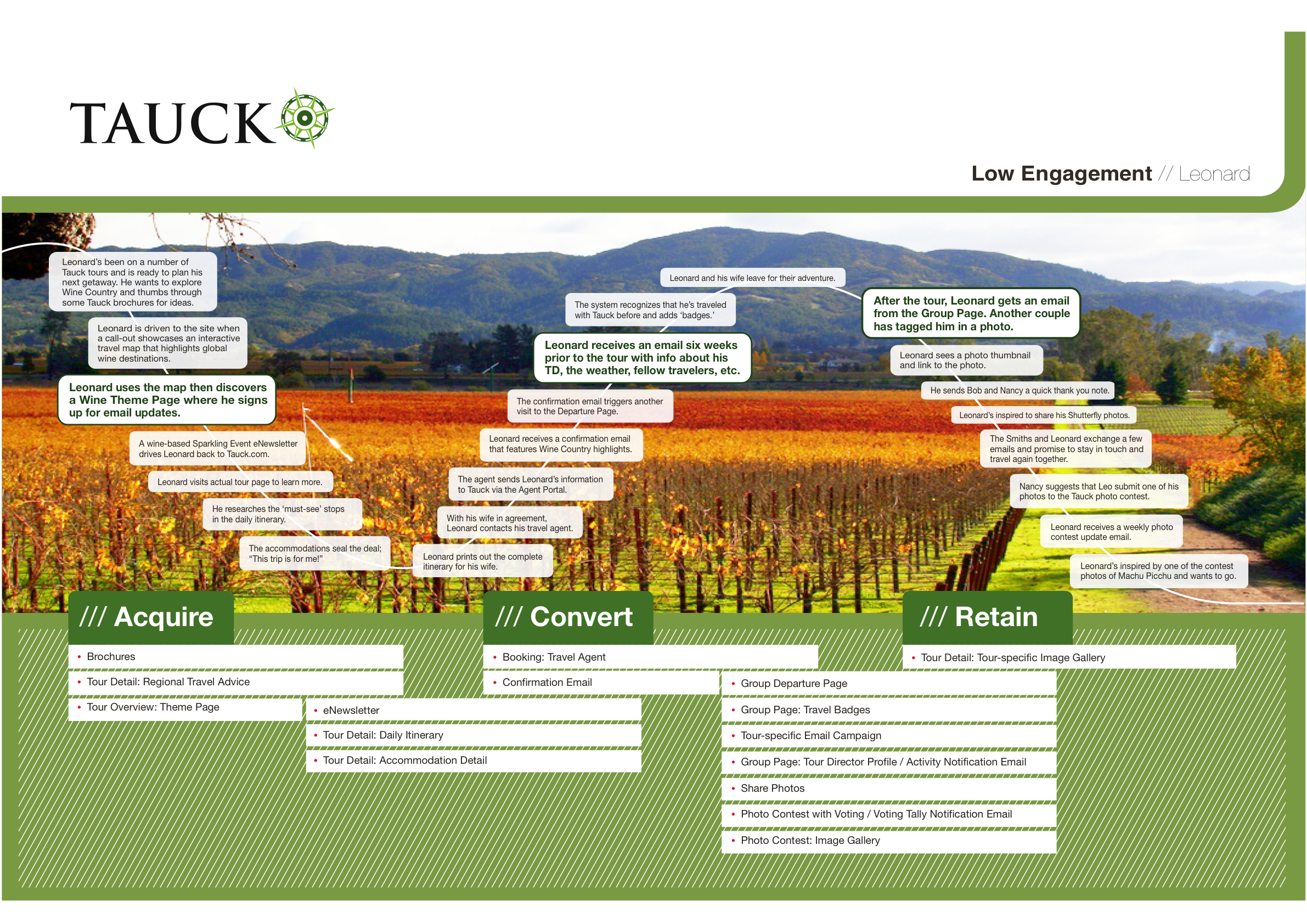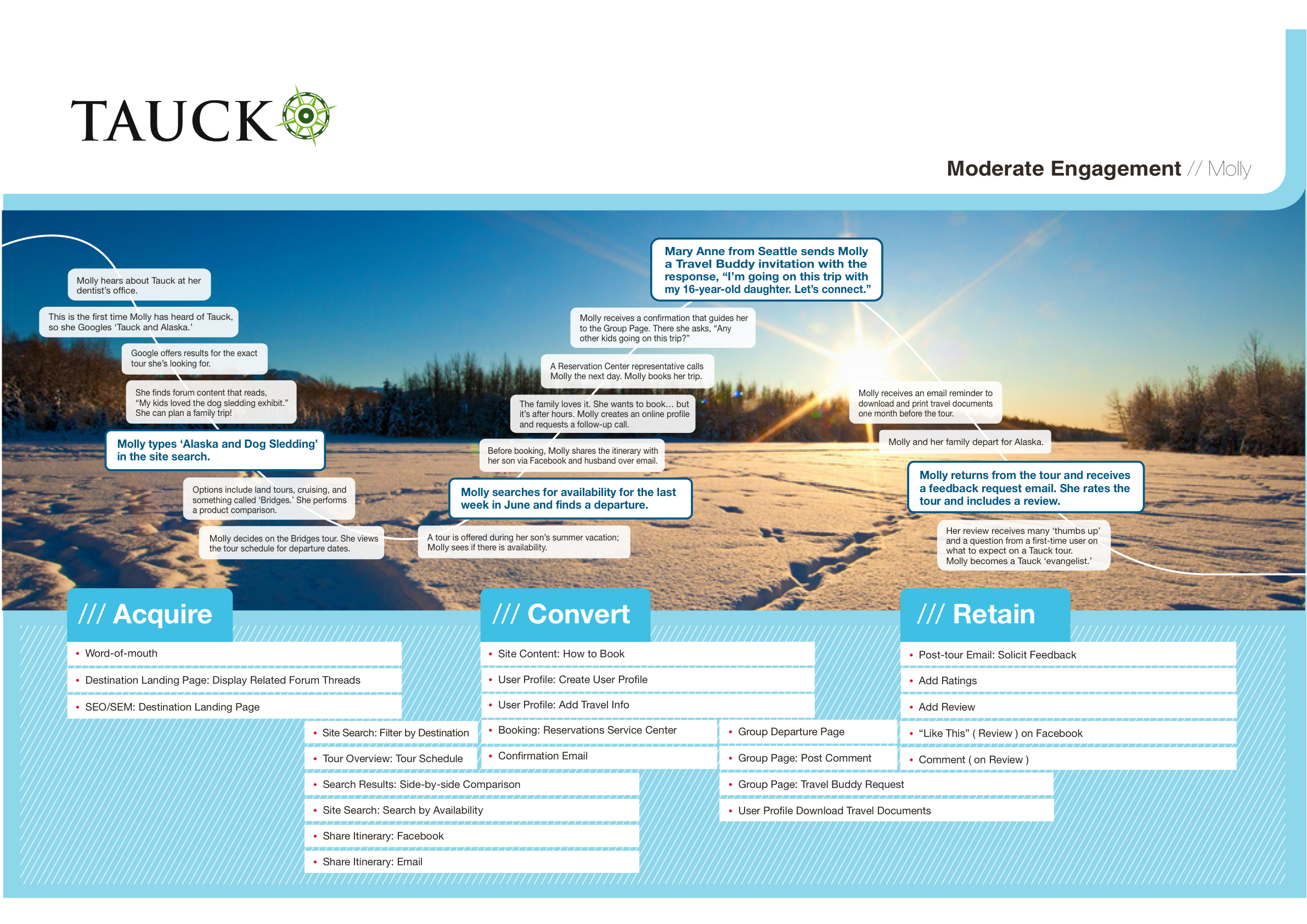 Customer journeys and user experience examples for the new Tauck World Discovery website.