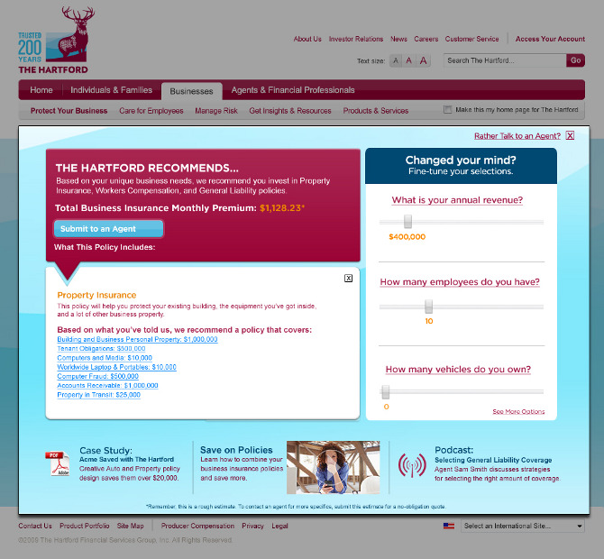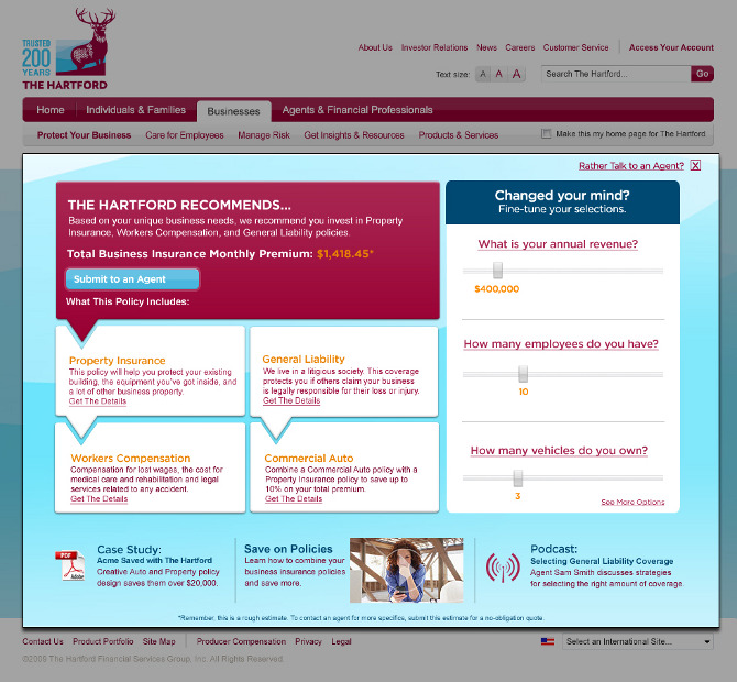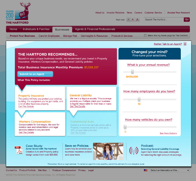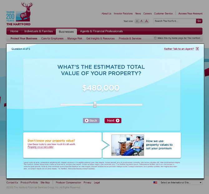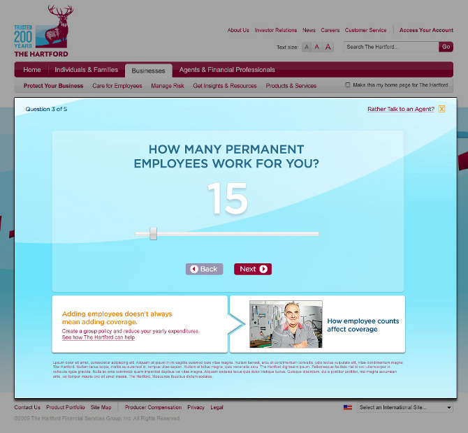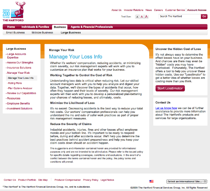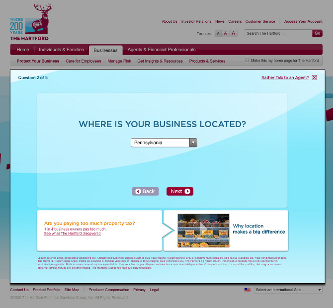 This was a web re-design and online self-help application project. It was an intense 4-month undertaking that spanned across six business divisions and involved over 25 key stakeholders. In the end, over 120 pages were concepted, designed, written and approved by compliance attorneys. Phew.