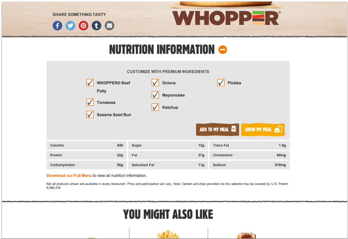Nutrition information was a big part of the build. Now visitors can select any number of ingredients and see nutrition values update in real time.