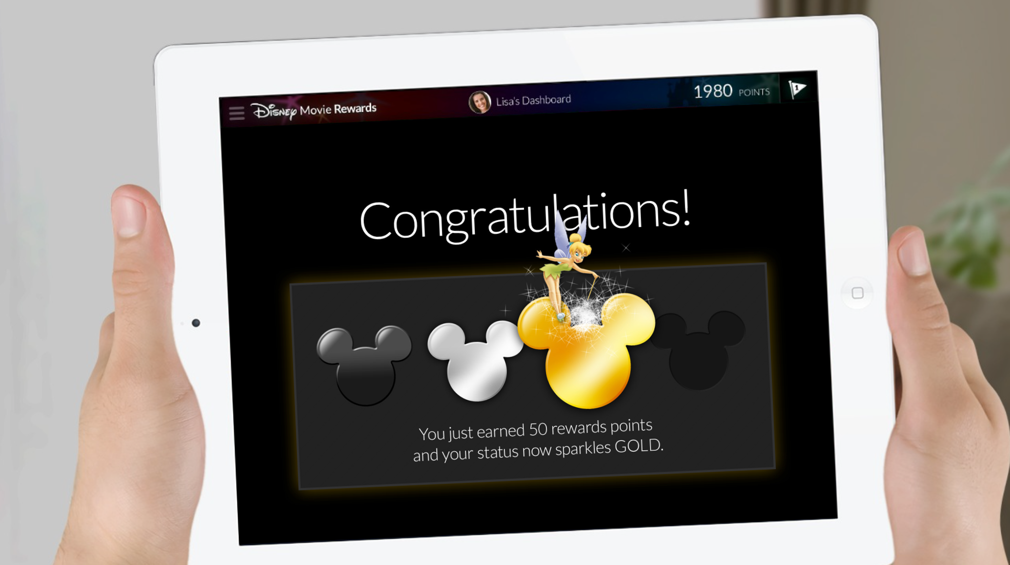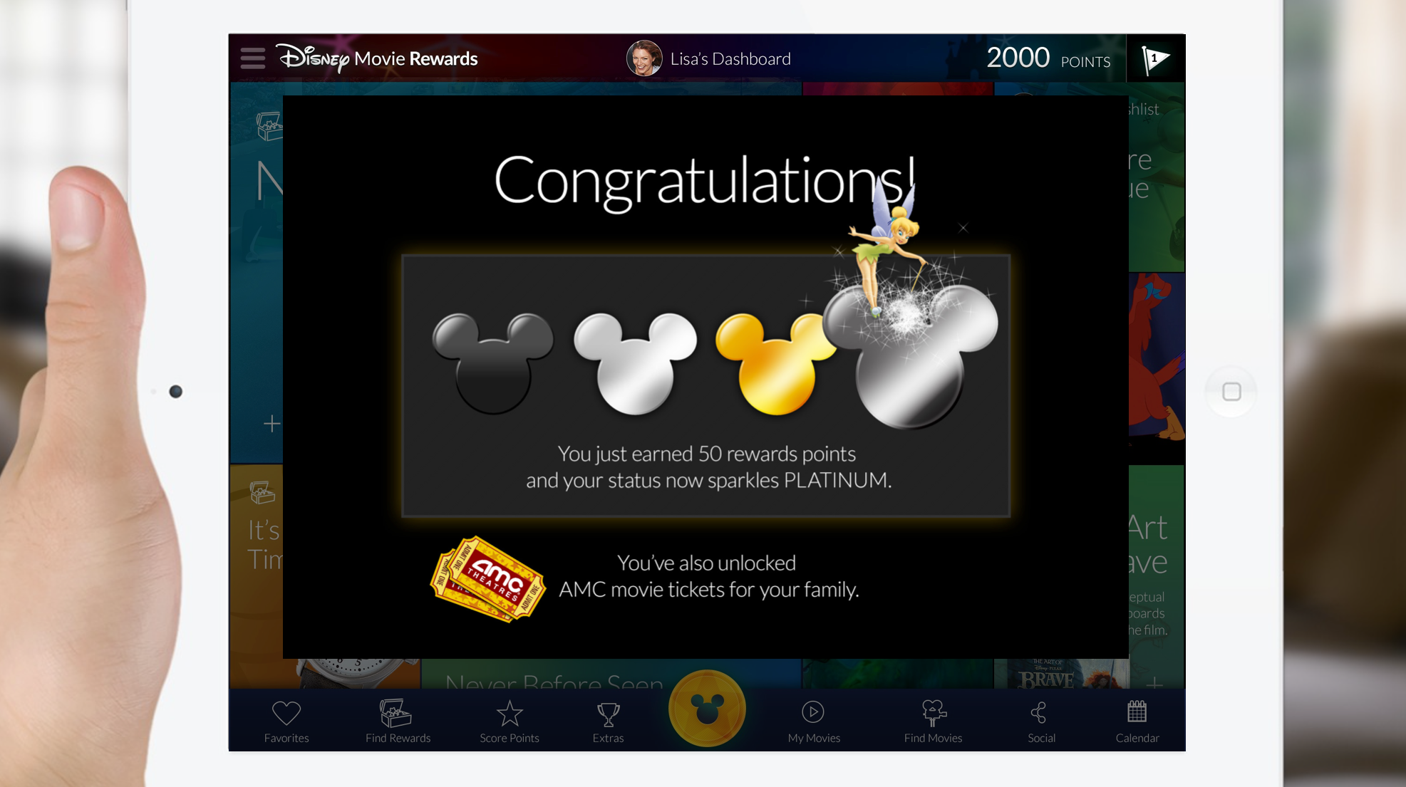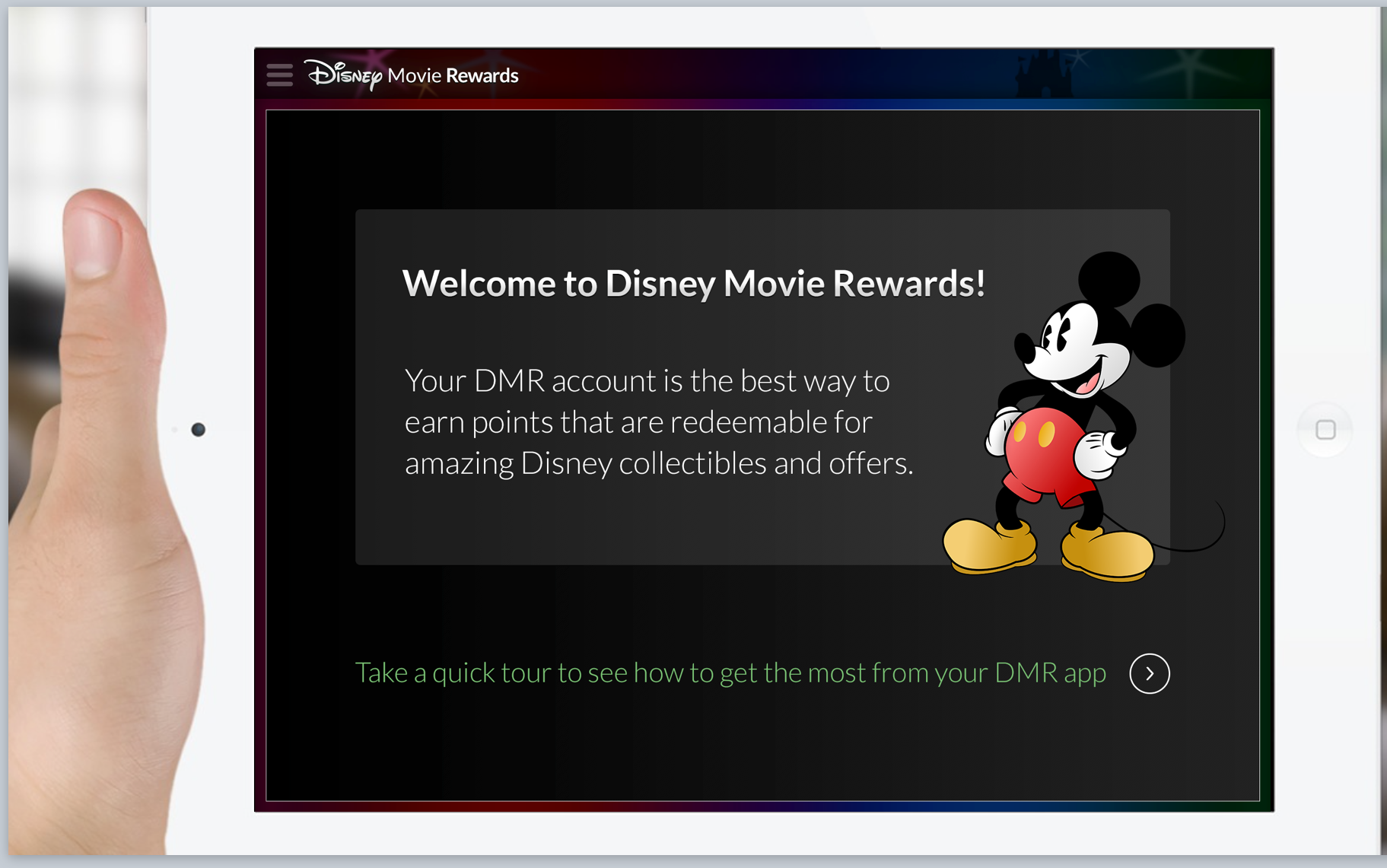 Here’s an example of just some of the ways our Customer Relationship Managment app can improve the lives of Disney fanatics. Our mom, Lisa, grabs her iPad to start her journey, tapping the Disney Movie Rewards icon.