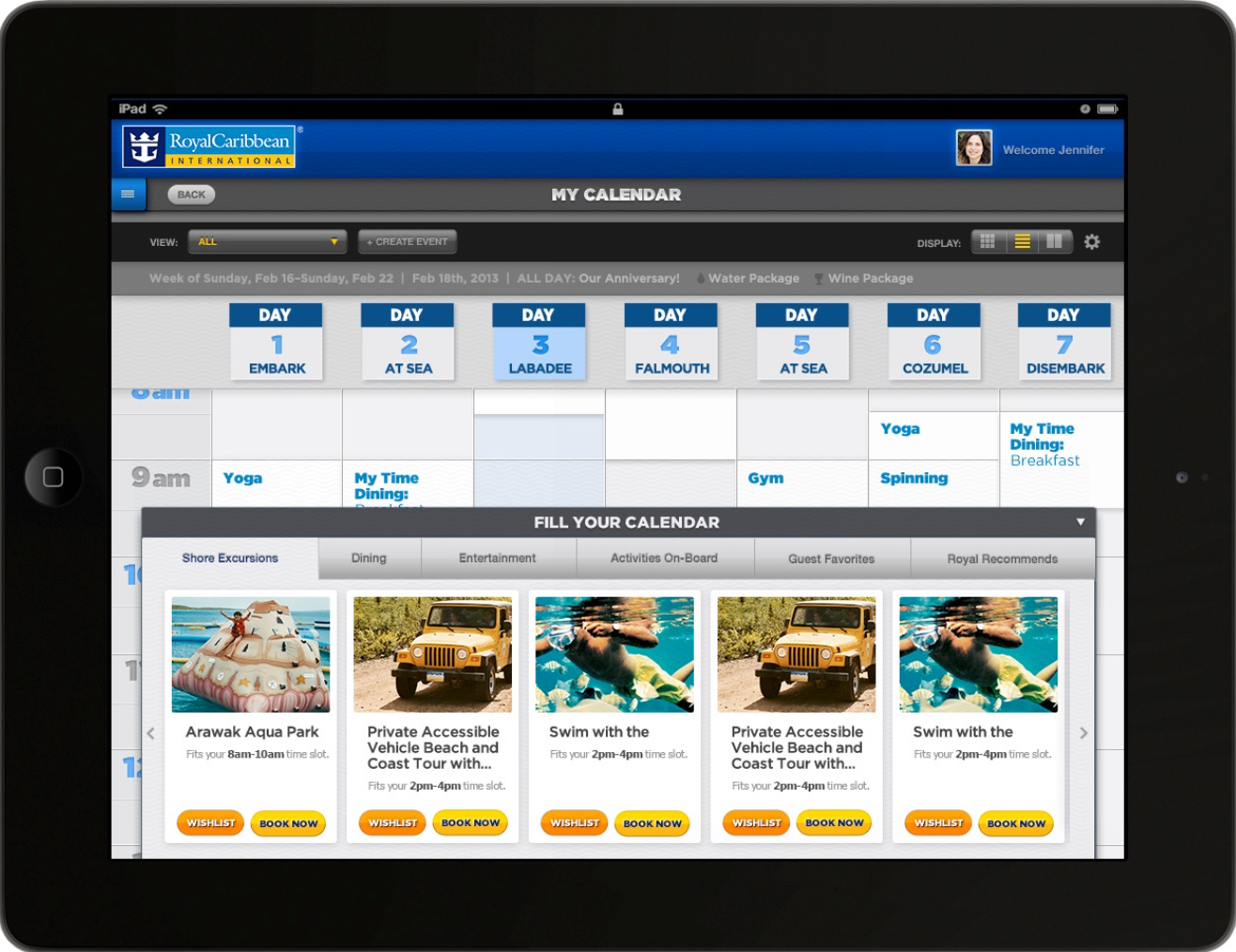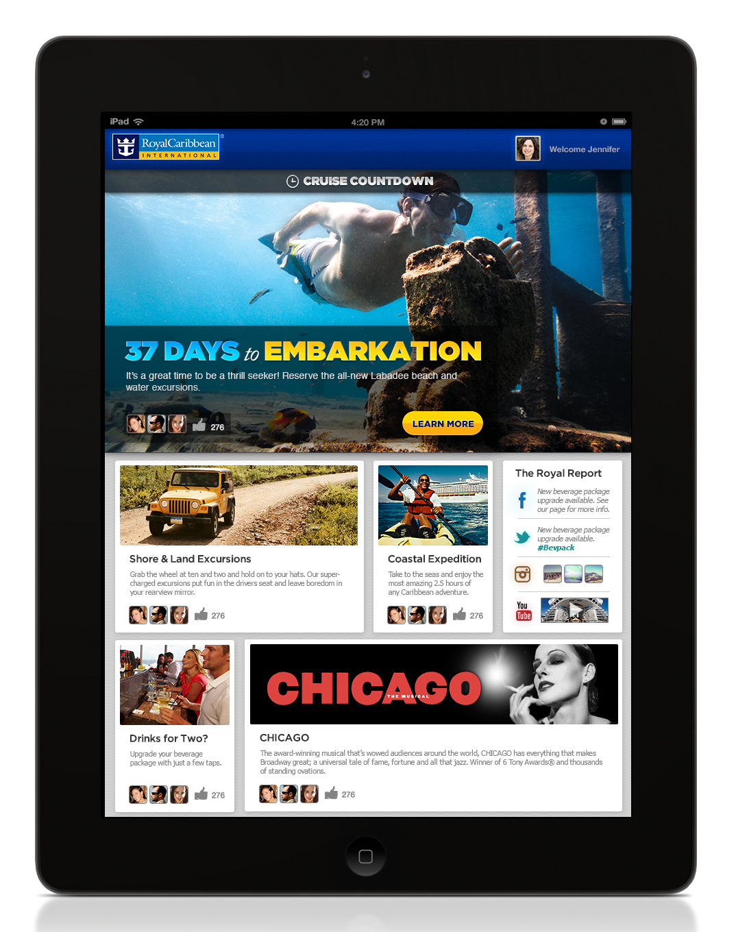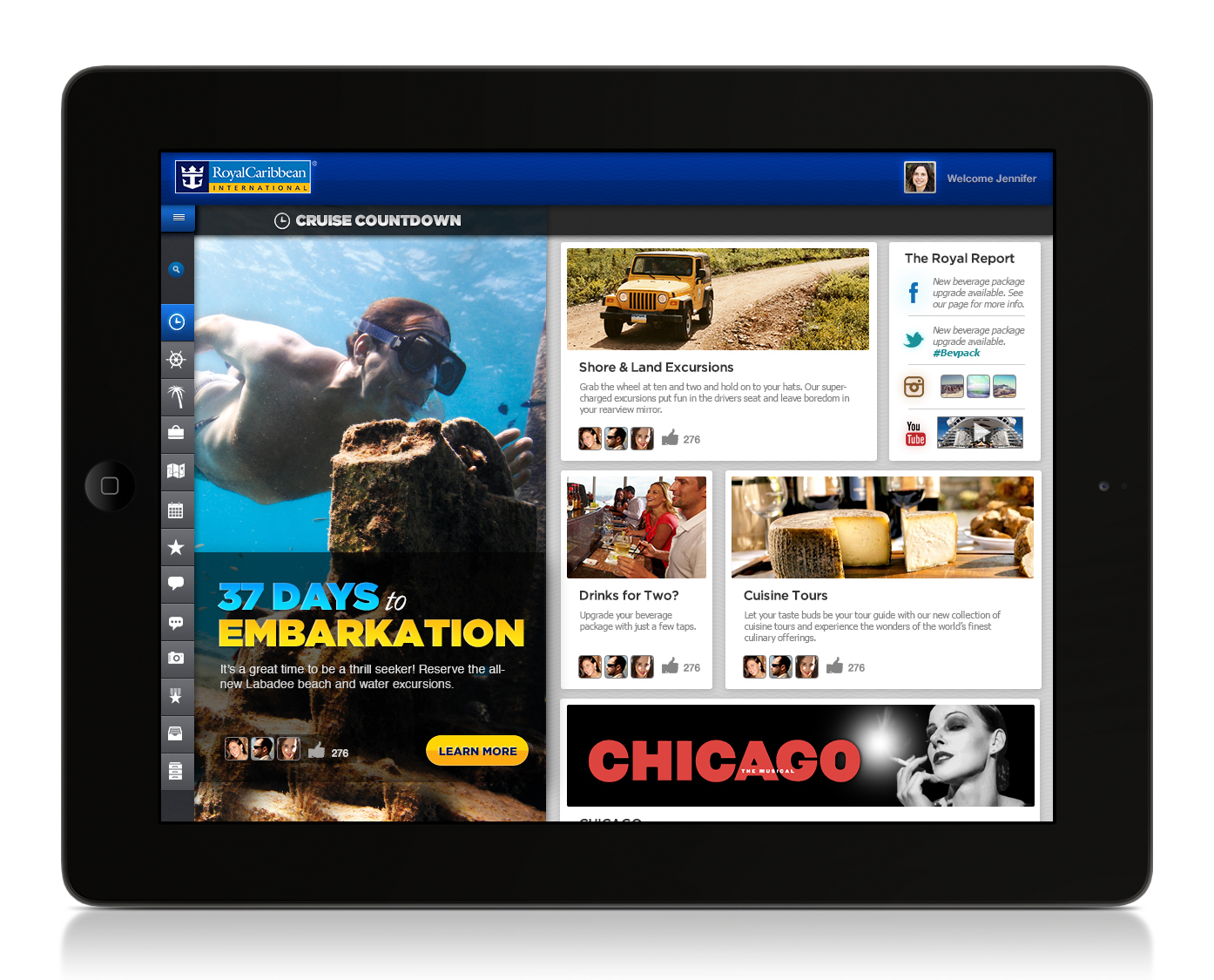 Your greeted with a vast variety of content that’s specific to your cruise, complete with a countdown to your vacation date.