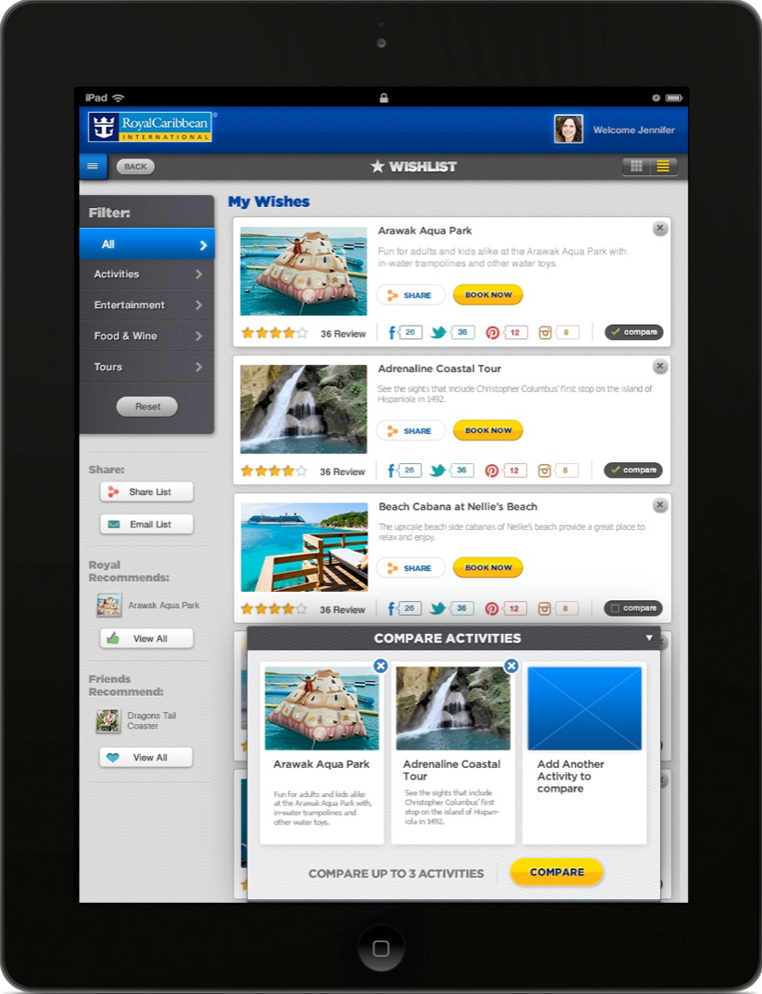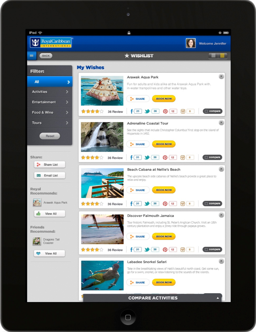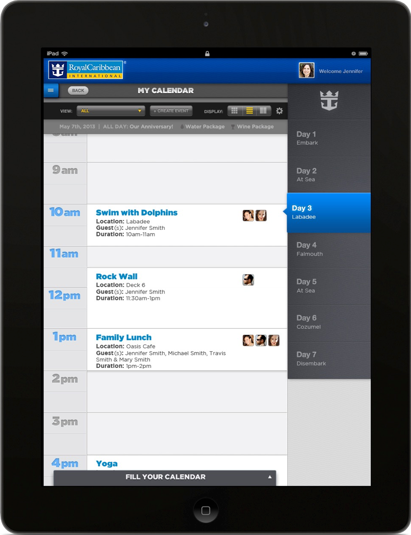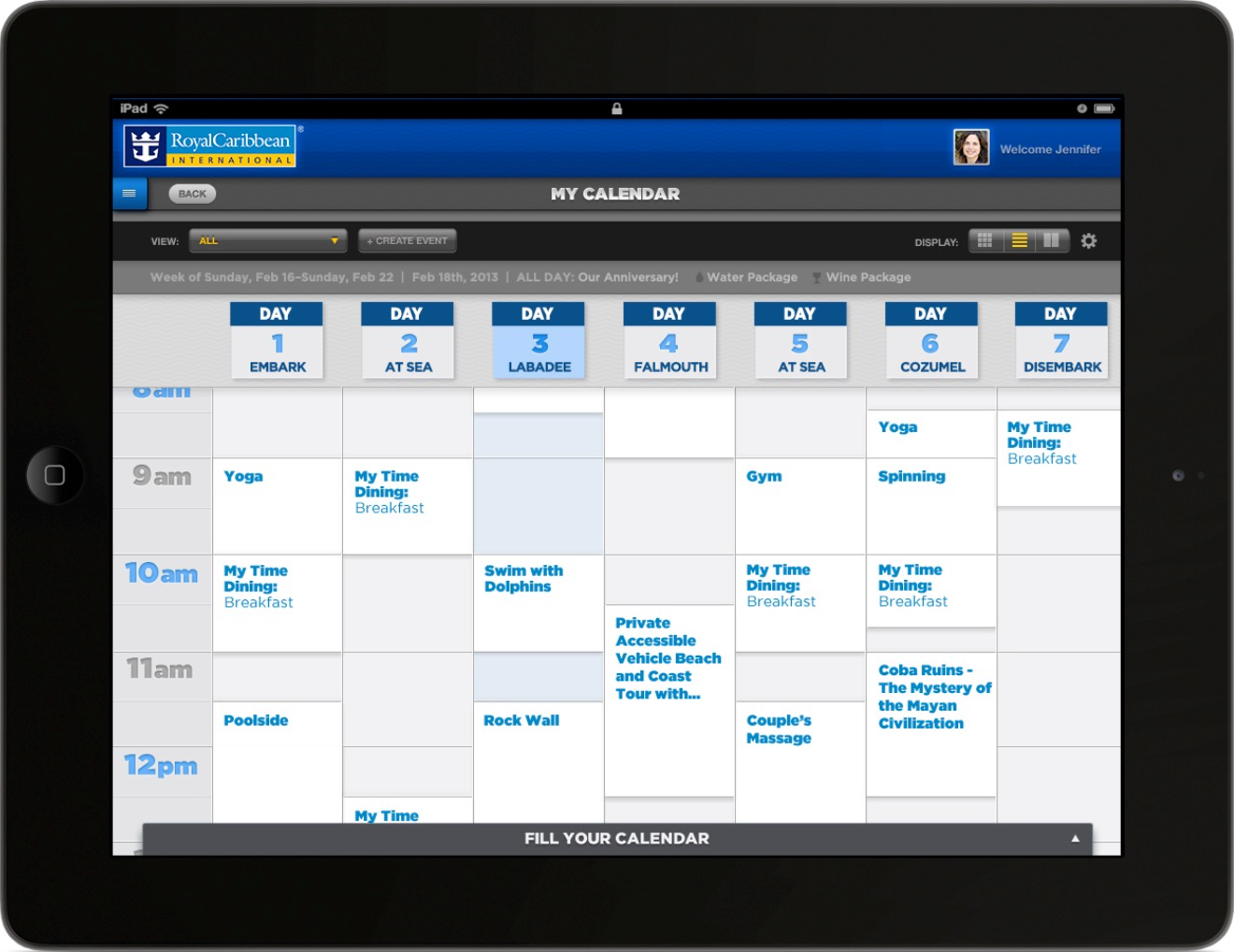 Your greeted with a vast variety of content that’s specific to your cruise, complete with a countdown to your vacation date.