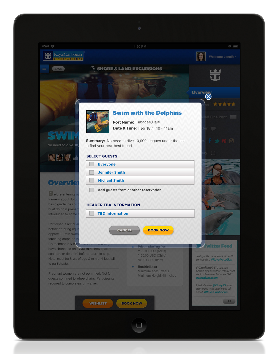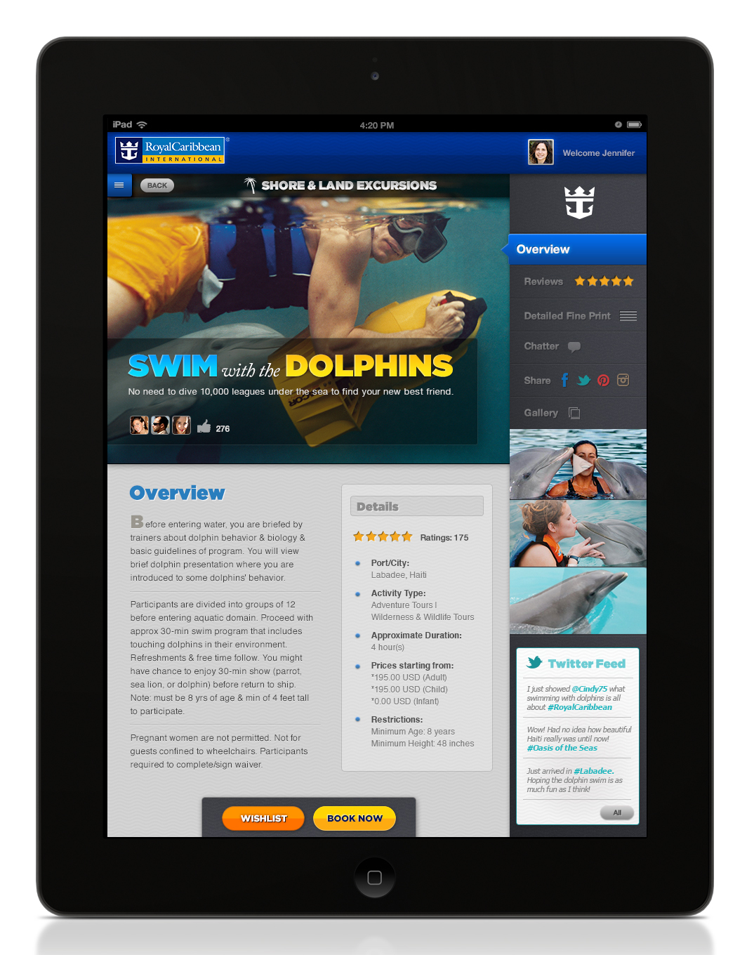 The product page has content that’s pertinent to the excursion, including the most up to date Twitter feeds about the excursion. You can also review excursion promo videos.
