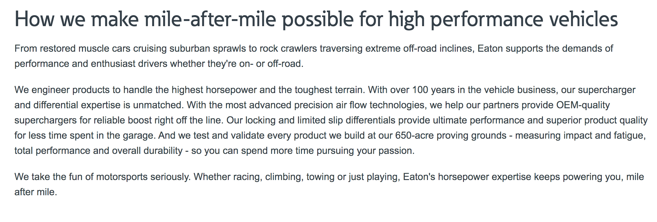 Content and UX for Eaton Inc.'s high-performance aftermarket solutions for professional drivers.